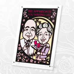 似顔絵・オリジナルデザインによる、世界でただひとつだけのしあわせきり絵で喜びの気持ちをお届けします。
